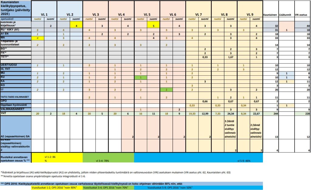 EtusivuMeidän kouluOpiskelu koulussammeTuntijaot Tuntijaot Yleisopetuksen tuntijako 1.8.2025 alkaen Kielikylpyopetuksen tuntijako (päivitetty 2025)
